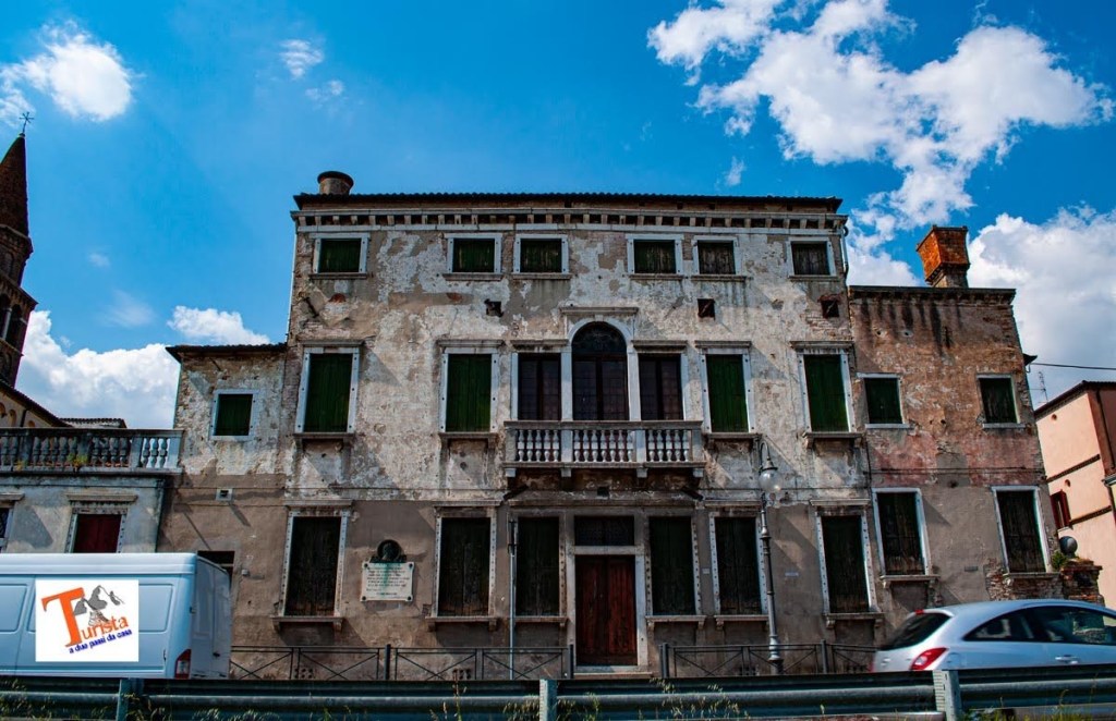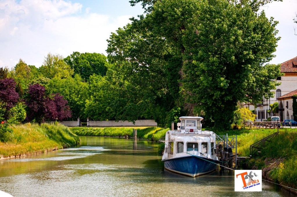 Dopo la pausa culturale, riprendiamo la bicicletta e proseguiamo verso Vigornovo e Fossà. La strada si snoda tra casette e orti, giardini e boschi, fino a Camponogara e a Calacroci. Dopo 10 Km di sudore arriviamo a Calacroci, da dove, un lungo vialone di platani che sembra una galleria ci porta quasi fino a Dolo. Da questa località seguiremo quasi in toto il canale navigabile del Brenta, la strada da qui corre parallela, o quasi, ammirando il panorama tra alberi i cui rami si chinano sull’acqua del fiume, come per dissetarsi, verde e le ville storiche, alcune, purtroppo in rovina, altre in ristrutturazione, come quella nella foto.