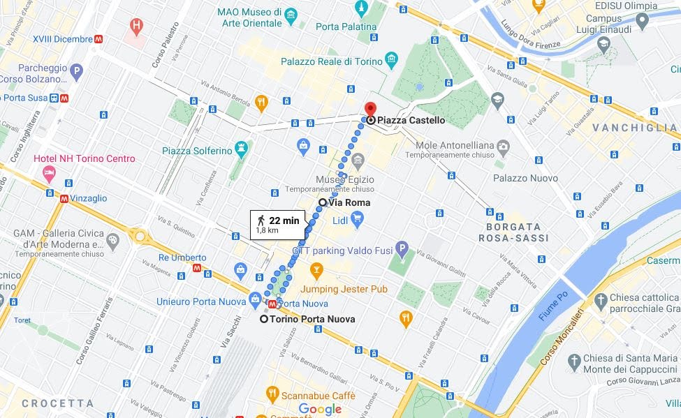 Un percorso di soli 2000 metri che dalla Stazione di Porta Nuova, il principale scalo ferroviario cittadino ci porta verso Piazza Castello per immergersi nell’atmosfera della Torino di un tempo.