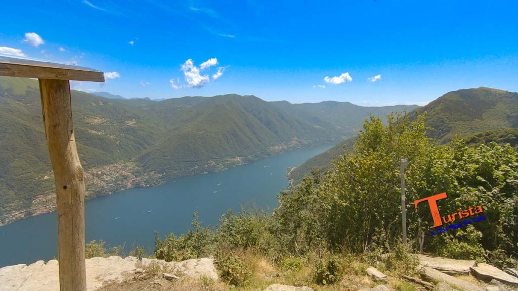 Dall’agriturismo, aprendo un cancelletto chiuso da una corda, si prosegue girando attorno all’Alpeggio e, una breve salita ci porta al punto più panoramico del sentiero: la cima del Monte di Comana, a 1.210 metri d’altezza, da cui è possibile ammirare il ramo comasco del lago di Como e alcuni dei paesi della sponda lariana.